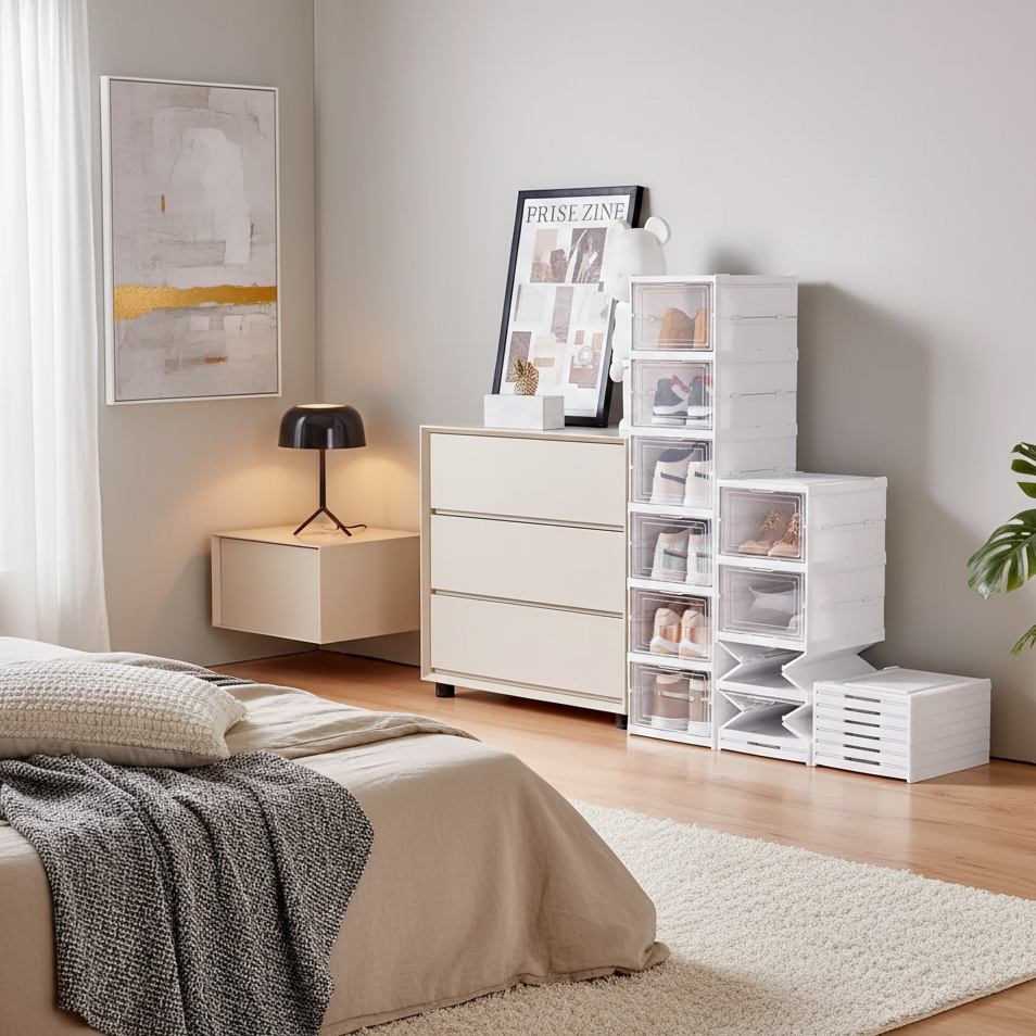 Each foldable box is dustproof and built to support both standard and high-top sneakers. The modular, stackable design allows you to customize the layout to fit closets, entryways, bedrooms, or dressing rooms — creating an organized look without sacrificing style.